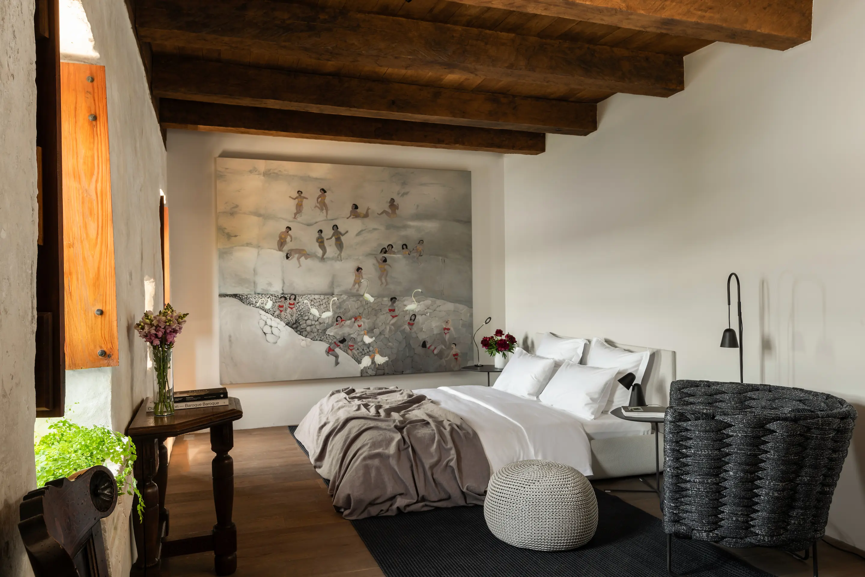 The 13 original monk cells have been thoughtfully restored into five spacious suites, each offering an en-suite bathroom and stunning views. Every suite features Renaissance furniture from the Thyssen-Bornemisza Collection and contemporary artworks from the TBA21 collection. A tasteful fusion of cultural heritage and contemporary elegance creates a truly memorable experience.